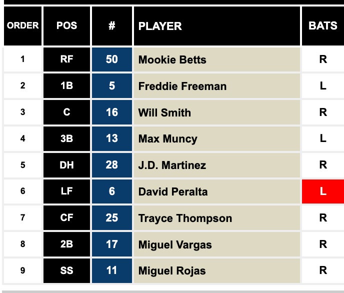 Pretty tough to have a better 1-2 punch at the top than Betts and Freeman, but other than that it's pretty whatever. The Dodgers stayed fairly quiet this offseason which many believe is a sign they're ready to go all-in on an Ohtani trade/signing. That very well could be the case, but for now the Dodgers of 2023 don't scare me like they have in the recent past.
