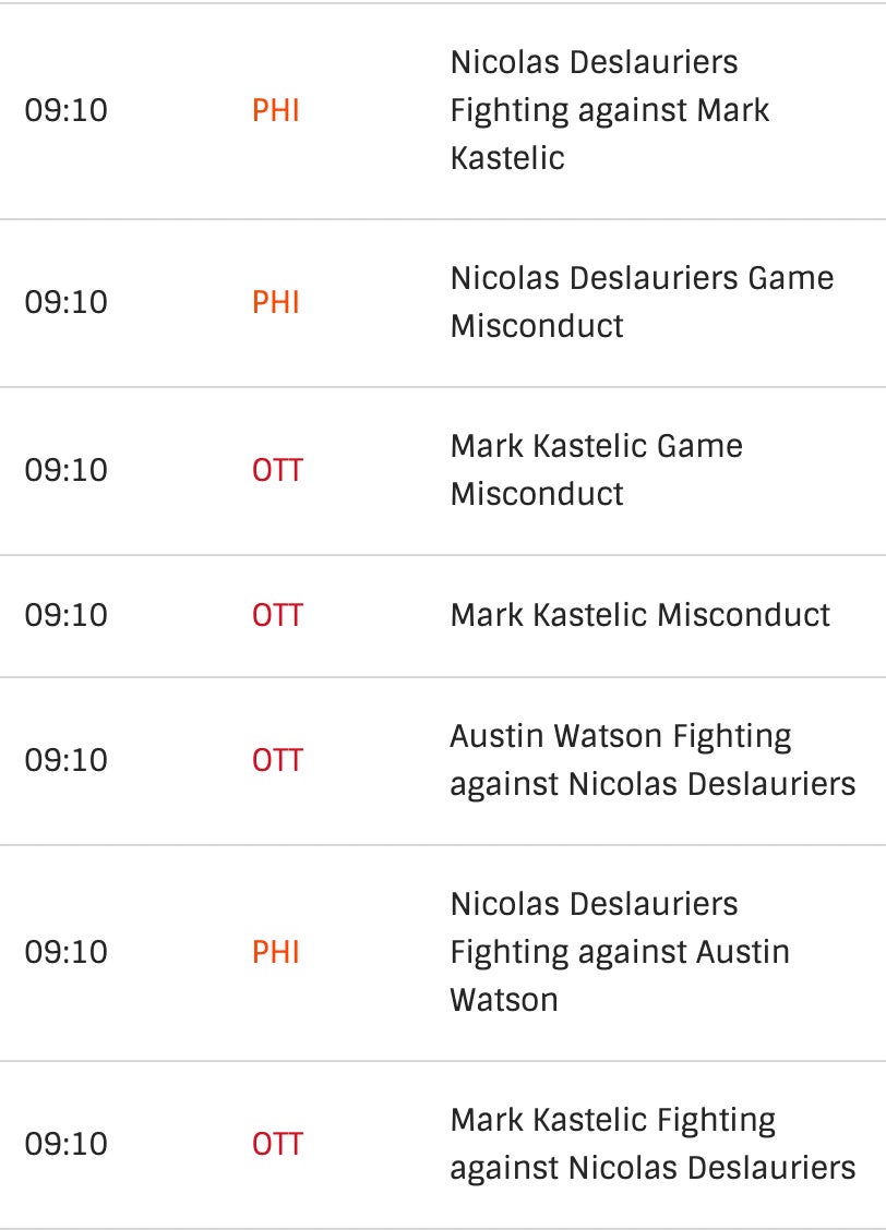 Two fighting majors and a game misconduct all in the same stoppage. Deslauriers racked up 20 penalty minutes last night with a 5:14 TOI. That has to be some sort of record. Again, just some clown show behavior from Mark Kastelic. But he should be thanking whatever god he believes in that the refs didn't let that one really get going. Because he may have lost some dignity out there, but at least he didn't lose his life.