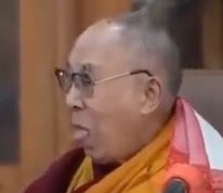 Over the weekend a video surfaced of the Dalai Lama, the top spiritual leader of Tibetan Buddhism, interacting with a young boy in a way that'll make your skin crawl. He invites the boy up to meet him, and at first just holds the boy's chin to acknowledge him, but then he points to his tongue, apparently instructs the boy to suck his tongue (trying not to vomit as I type this part), sticks it out and brings the boy's face in to his face. Thankfully the boy, who appears very uncomfortable and is surrounded by grown adults who are acting like this is fine, does not follow along with the Dalai Lama's request, and the moment passes. (You can find the video easily but I didn't include it because that's too much heebie-jeebies for a Monday).