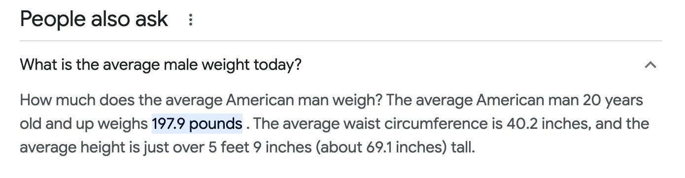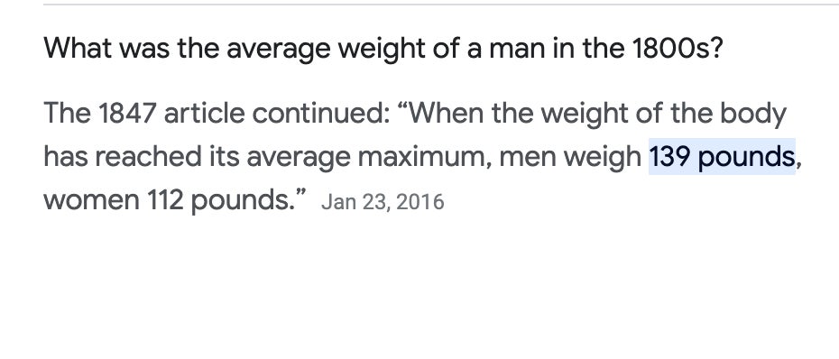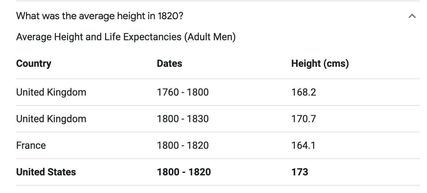 Oh? And what was the average height and weight of a human being in 1815?
