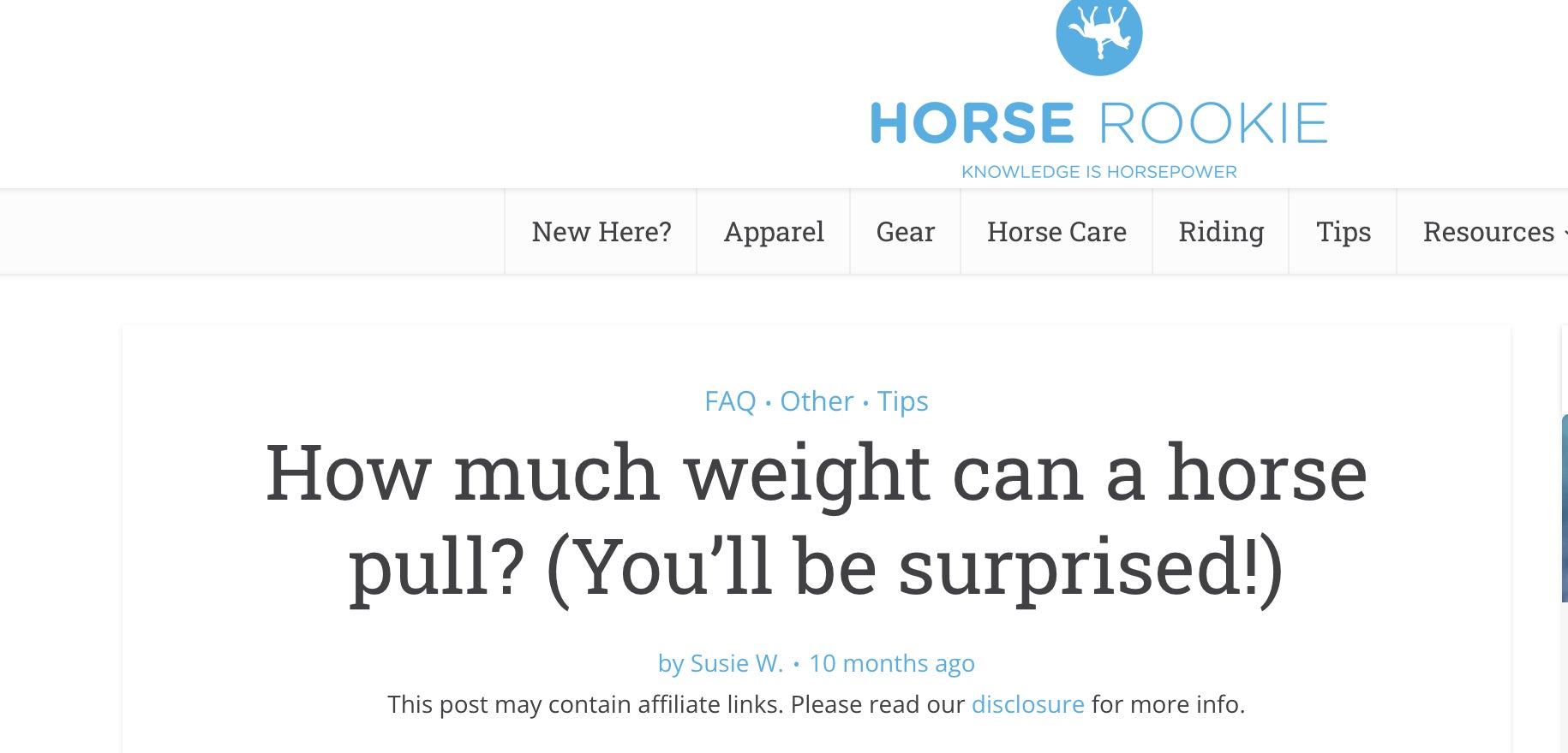 Sure, that's a fact, horses are strong. I read all of these other facts on Horse Rookie dot com, one of the FIRST results when you search "how much weight can a horse carry," on google, courtesy of Susie W's expertise: