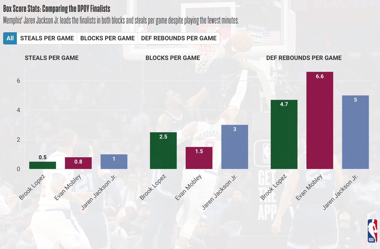 Part of what makes JJJ unique isn't just his raw numbers, but it's also his defensive versatility. In today's NBA, you have to be able to guard multiple positions. If you want to be a DPOY, you have to be able to defend multiple positions at an elite level. When looking at this year's candidates, that wasn't always the case. Brook Lopez is an elite rim protection big. He blocks everything. But if you get that man in space, he's cooked. It's partly why the Bucks play so much drop with Lopez on the floor. He does not want to be in space. Evan Mobley is way more mobile in that regard, but JJJ is another level of defensive versatility with the type of positions he can handle by himself, with no help