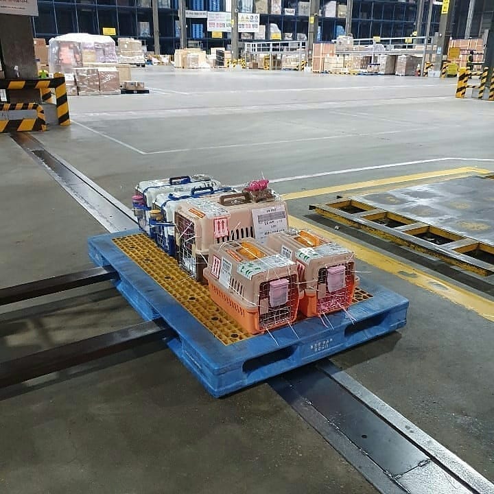 Then, he sent me a pic of a skid full of puppy crates in a warehouse that said, "That's your puppy and other puppies already at the tarmac, ready for shipping."