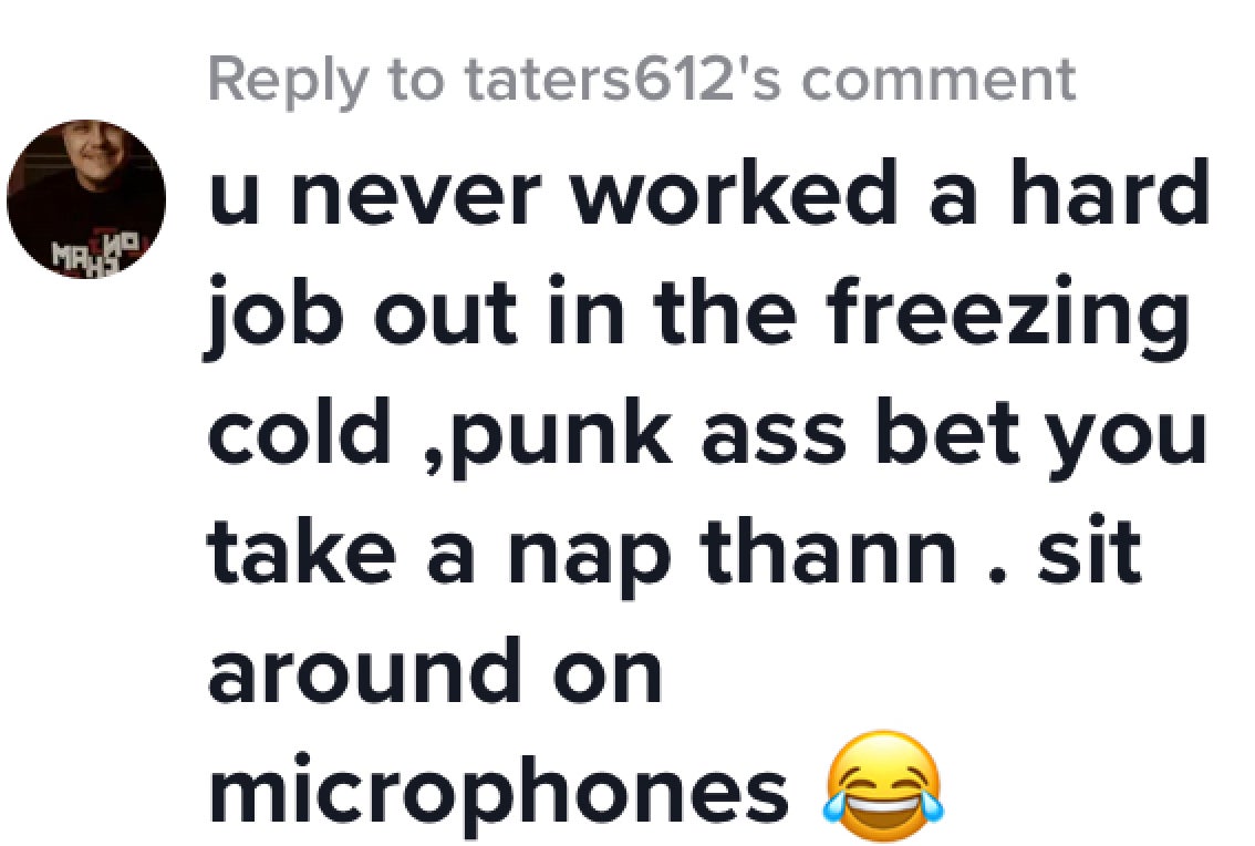There seemed to be an underlying sentiment that me not being able to nap meant I simply don't work hard enough? How ridiculous. I work at Barstool Sports as an internet personality. Maybe the hardest job in the world. A lot of you wouldn't last a day in my shoes working 5 to 6 hour days on only 9 hours of sleep. Talking into a microphone or camera and having to give my opinions on things. It's some of the hardest labor in the world.