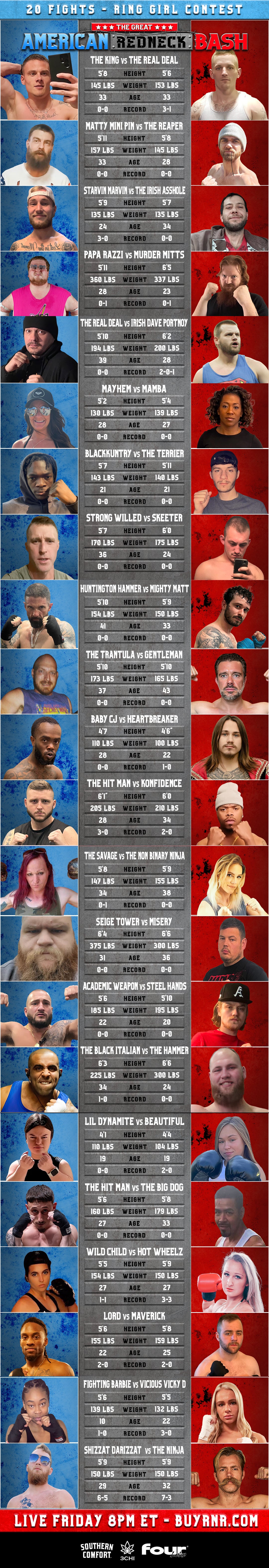 Here's The Full Fight Card Order For The 20 Brawls At Rough N' Rowdy 21 TONIGHT