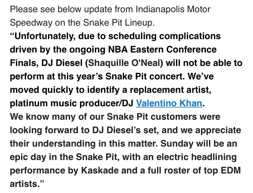 Shaq Is DEVASTATED He Can't DJ The Indy 500 Snakepit And Drop Filthy Dubstep Because He Has To Be In Miami For Game 6 Of Celtics-Heat