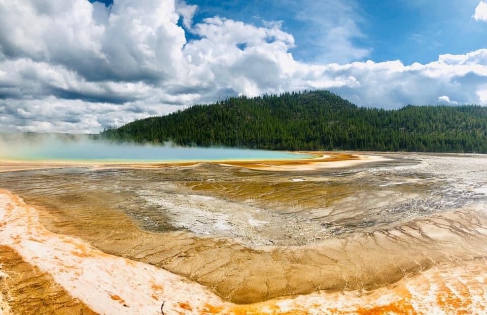 We drove the entire loop of Yellowstone trekking out at 5am and not returning until midnight. We felt the spray of Old Faithful up close. Smelled the nauseating sulfur at the Grand Prismatic Spring. Got stopped on the road by two brown bear cubs foraging for berries with their mother. Hiked the Yellowstone Grand Canyon and got to see that famous view from artist point thats in every school textbook about manifest destiny.