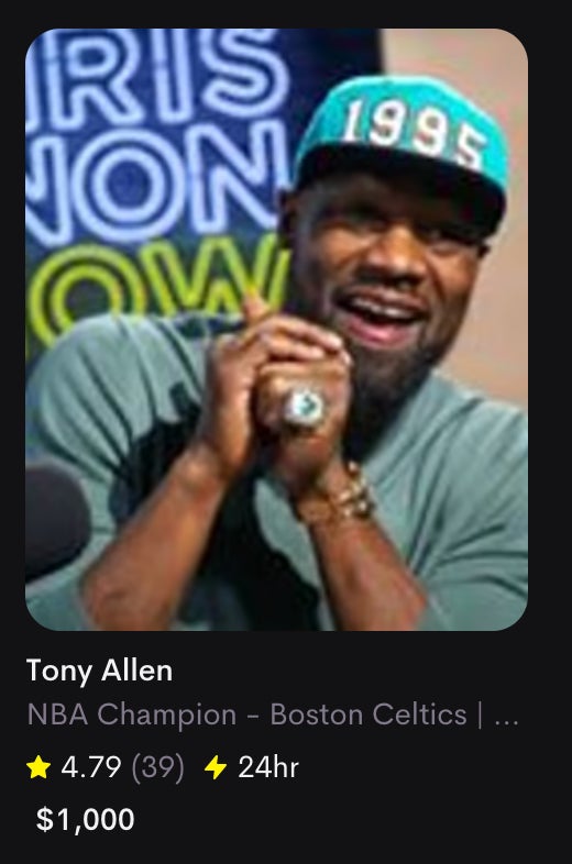 This one checks out. Tony Allen won a NBA title in Boston and was always a scrappy, defensive player which the city of Boston appreciates. Now, if he was a white guy he could charge $5,000 per Cameo and still get it, but Boston fans are willing to let that one slide since he helped get them a ring.