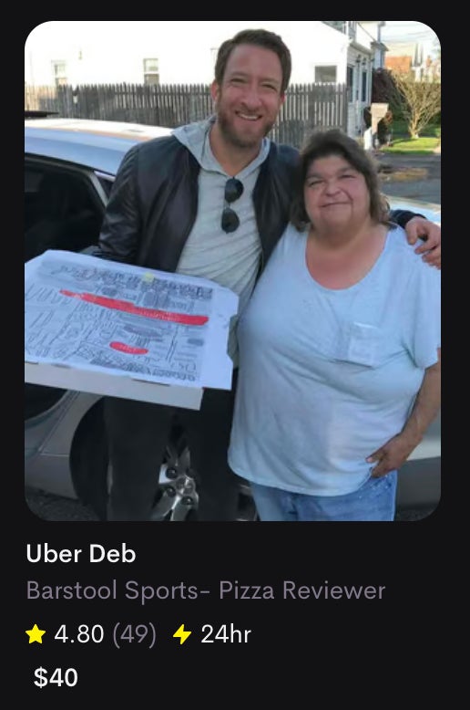 Uber Deb's Cameos are objectively hilarious. A little niche, perhaps but hilarious nonetheless. Deb is one of my favorite ancillary Barstool characters of all time and she could deliver me anything short of bad news and I'd love it.