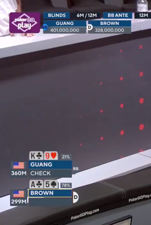 Just gotta tip your cap. Guang even could have been bluffing with a better ace high. But Brown simply did not believe it and his gut instinct won him $500,000.