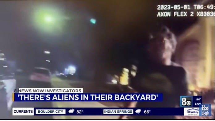 But then again, not every 911 call about a UFO is the same. Once in a great while, you get actual physical evidence to back up their claim. From a source as reliable as a Las Vegas PD body cam. This local station agrees. To the point the kind of story they wouldn't have touched with a million light years pole as recently as a year ago, led off their newscast.