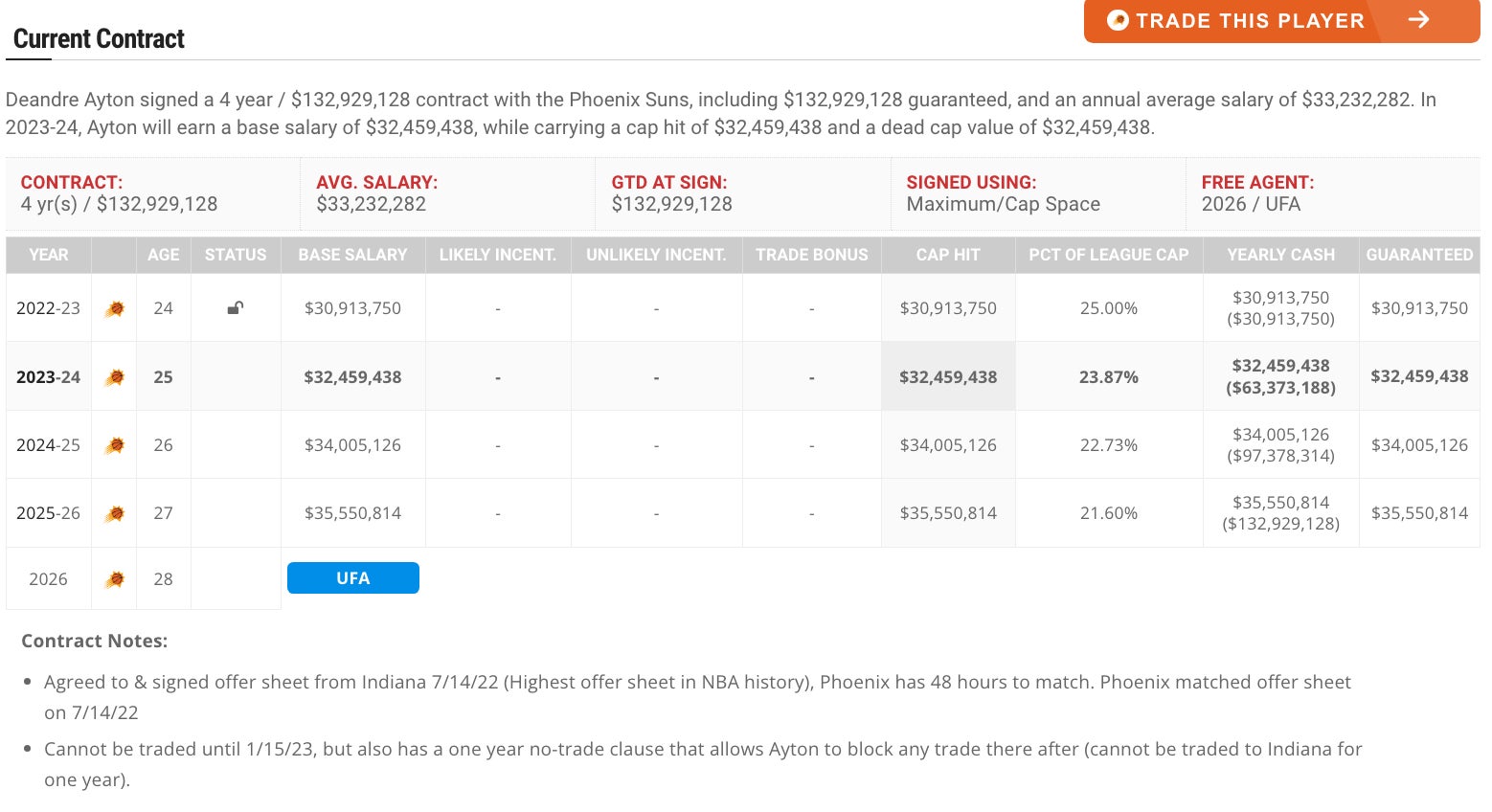The issue for the Suns is that when you try and move off money like this, you almost always have to attach a 1st in order to convince a team to take on bad money. Given the fact that they've basically given away all their picks for the next decade, it's no surprise they have to bite the bullet and bring Ayton back. Not only is that going to be an issue pretty quickly in terms of the new CBA and that second apron price, but it's also a huge hit for the Suns when it comes to the hope of using Ayton's salary to maybe bring back multiple pieces at different positions in an effort to help build out their depth. Let's not forget the Suns still have to fill out the majority of their roster