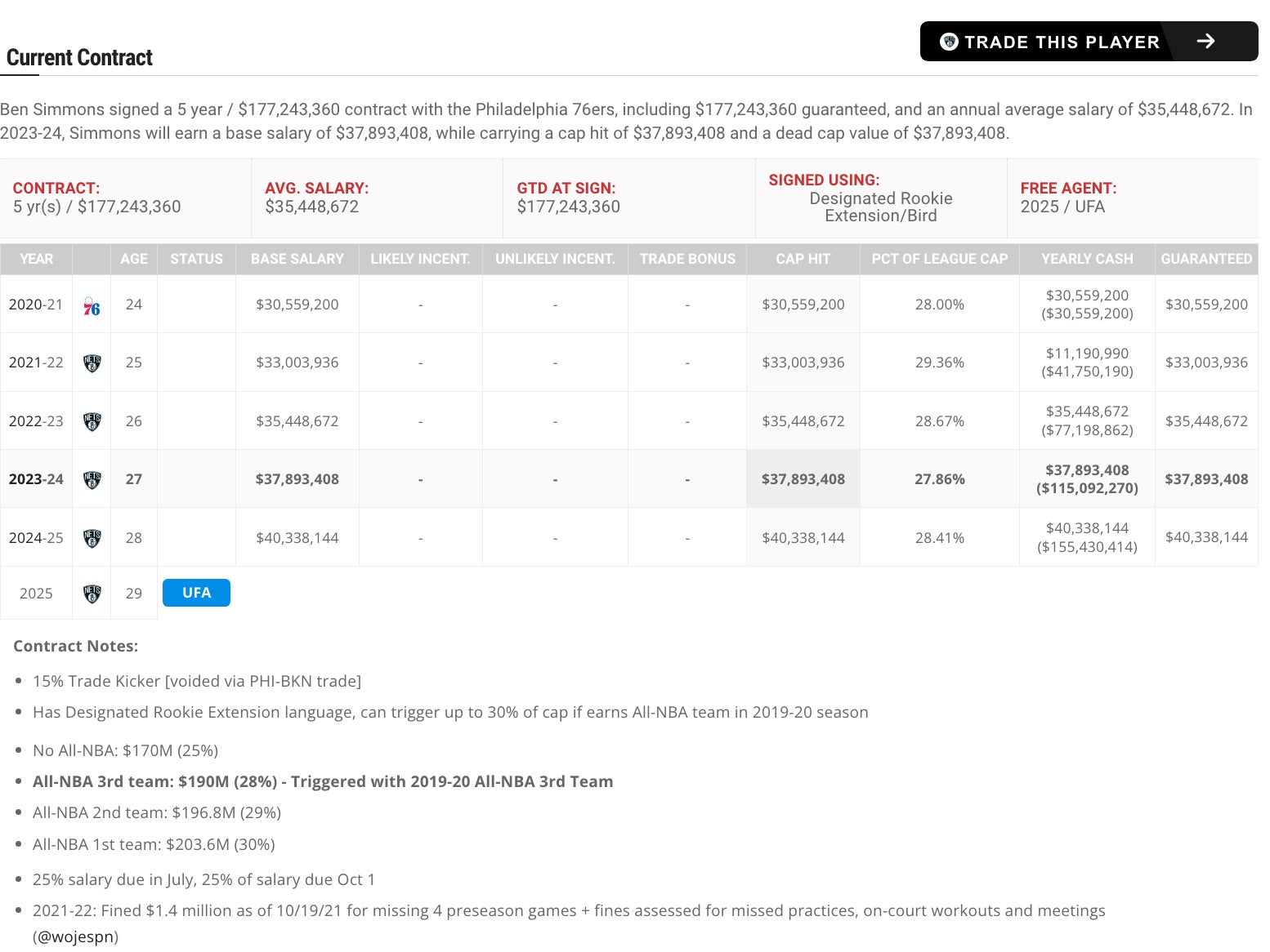 Almost every time we've seen one of these large contracts get moved, the team trading the player also had to attach some sort of picks package in order to pull it off. But if the Nets can't offload Simmons and that's a sticking point for them, well then nothing else really matters. Could we see someone like Utah and Danny Ainge decide to get involved here to the point where they are the 4th team involved and they end up with Simmons? Maybe the Spurs? We did hear Shams say this could be a 3 or 4 team ordeal, and I bet that's because of Simmons.