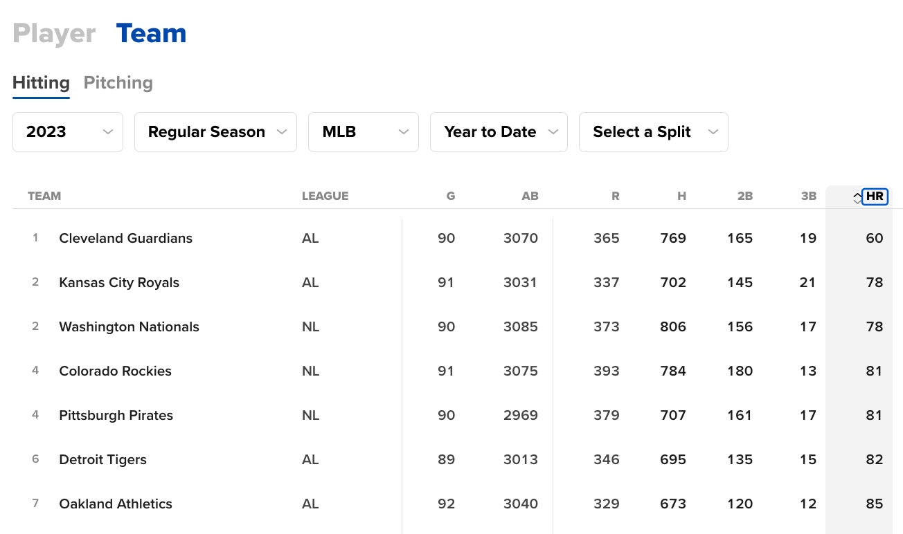 I mean look at these numbers. The Guardians are 18 behind the Royals for the least amount of home runs in MLB. They are on pace for a measly 121 bombs, which would be the third lowest total in baseball since 2015 (not including the Covid year). There has been plenty of home run swings from the Guardians lineup just not much home run contact.