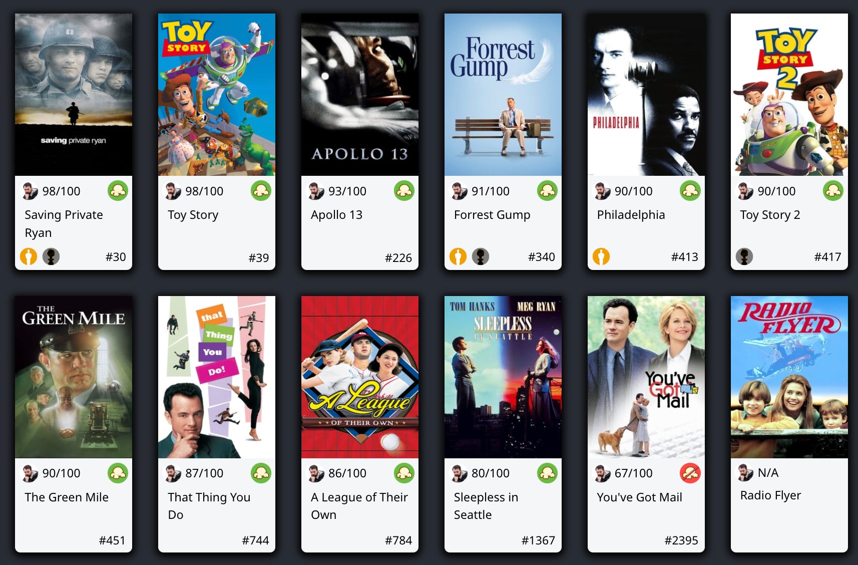 To me, this is the end of the great movies. After that, there are some solid movies that are not made better by a Hanks performance(Charlie Wilson's War, Greyhound, Bridge of Spies) and some that are made significantly worse by him (ELVIS). Not to mention the absolute garbage at the bottom of this list….