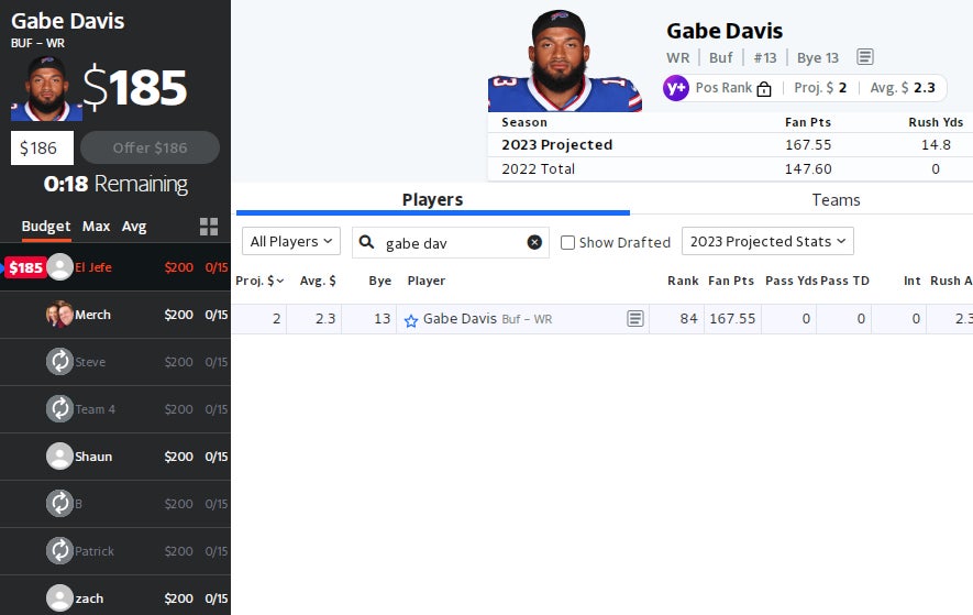 Just spent $25 on a backup QB? Whoops! Take note on what players and positions others have allocated major funds for. Especially if your in a one-on-one bidding war. Your system should have an easy way to do this. Also take note at how much time is left on the clock when someone else bids. Caught bluffing guys will usually bid earlier in the clock. They aren't likely to bid with one second left once they know no one else is left in the running.