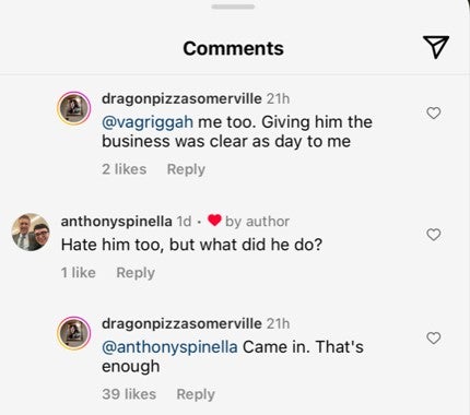 That's a weird definition of vaguely familiar when you seem borderline obsessed with me before we ever met. So let's clear up the most obvious lie that the Dragon guy keeps telling. That his behavior towards me was about pizza not politics. That is fantasy land and he knows it. He had 48 hours to try and come up with examples of me being bad for the pizza industry or small business and he still can’t come up with anything. His answer is still the NY Times or “Everything, everything, everything”.