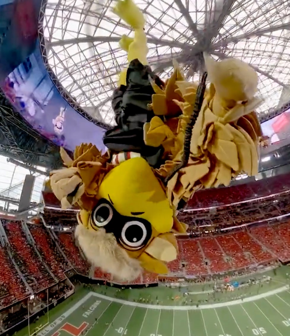 Instead we saw Freddie spread his wings as he soared throughout Mercedes-Benz Stadium. Next I need him to take the harness off and just go full wing suit.