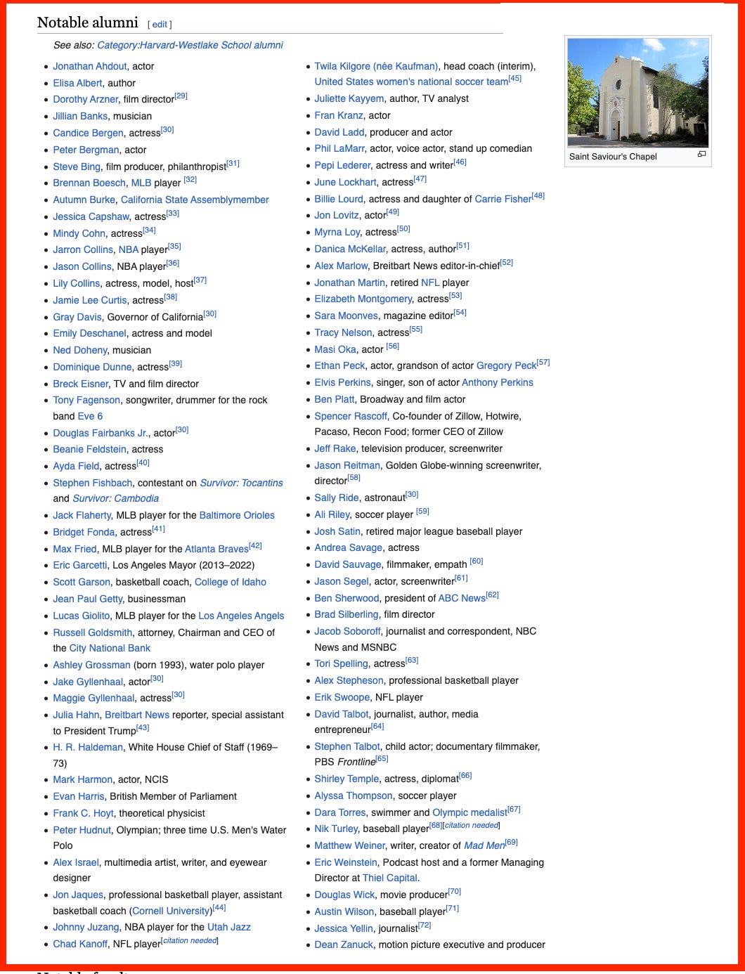 - The Notable Alumni section of high school’s Wikipedia is actually staggering: