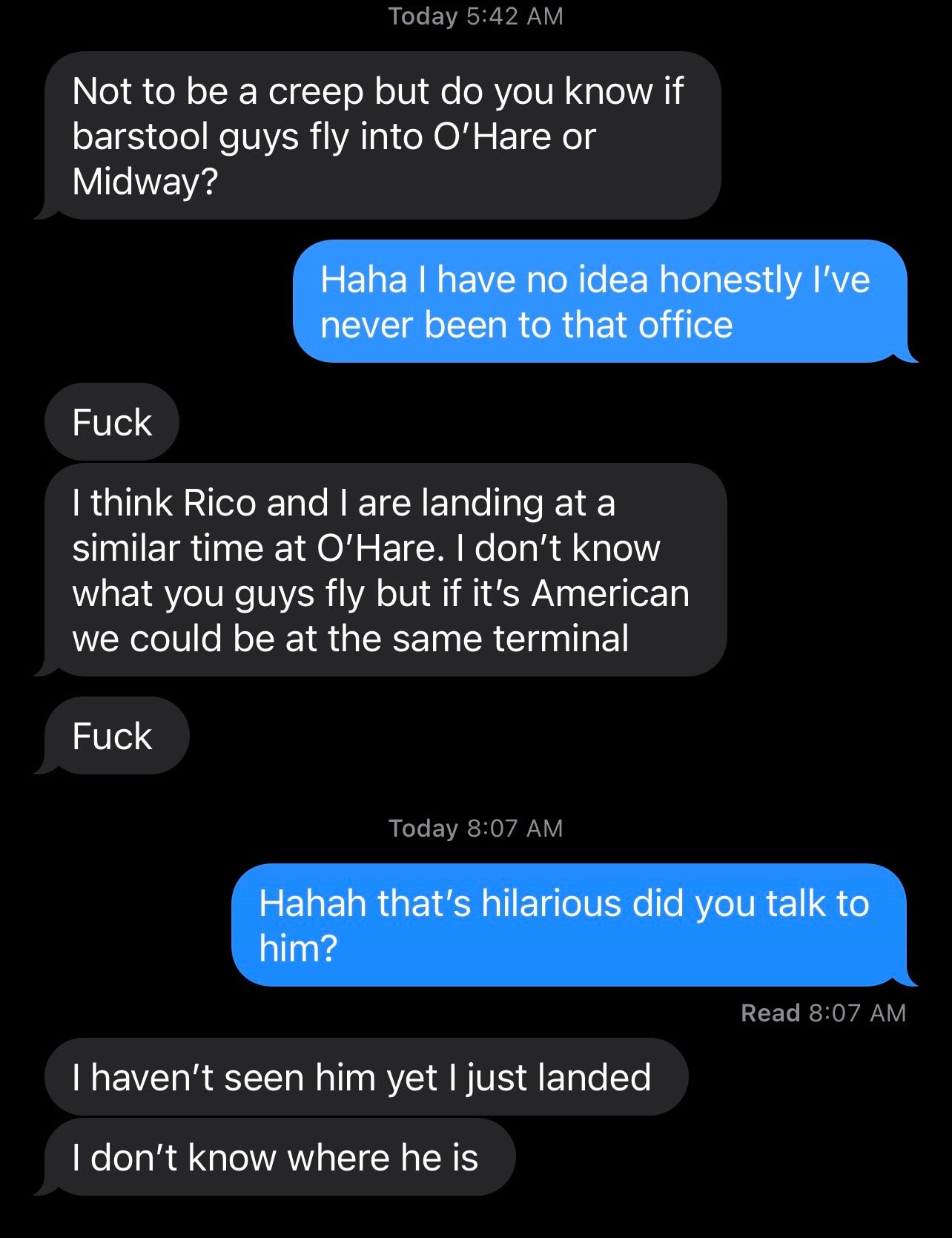 So again, I'm 100% not accusing Rico of anything. But I simply don't know how else to make sense of some texts I received at 5:42am this morning.