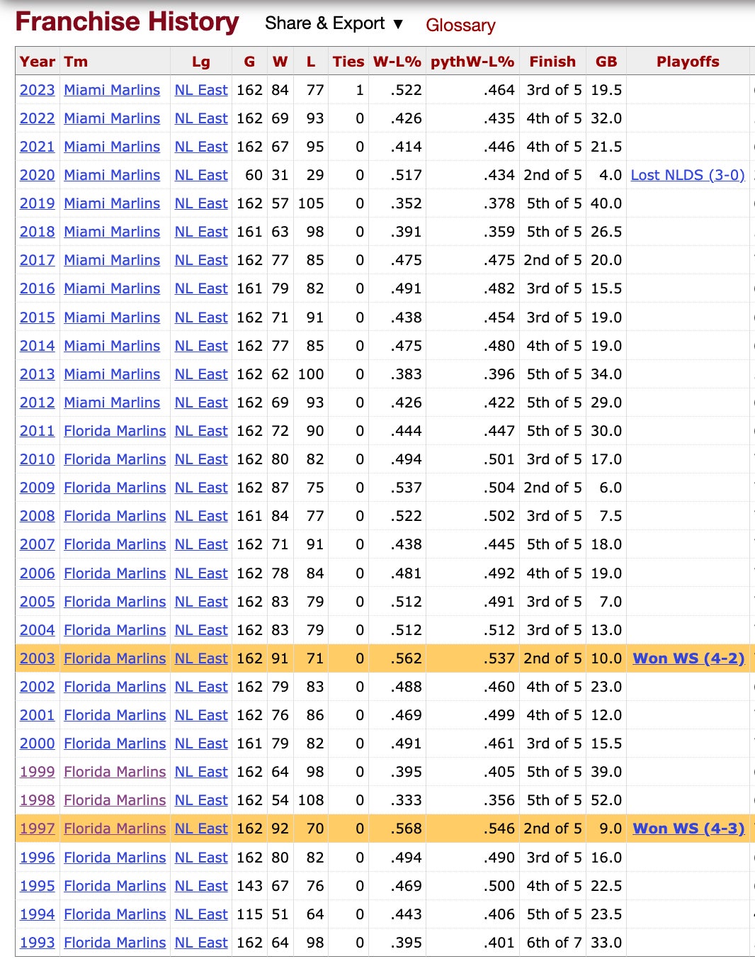 - The Worst World Series we could dream up is Marlins vs. Twins based on ratings and general interest. There's a less than 1% chance of that happening, but still worth acknowledging. The Twins haven't won a playoff game since George Bush's 1st term while the Marlins have never lost a playoff series when fans are allowed to attend postseason games.