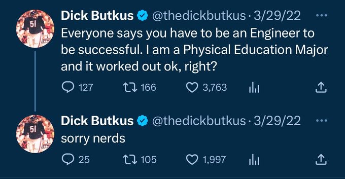 “If I was smart enough to be a doctor, I'd be a doctor. I ain't, so I'm a football player.”-Dick Butkus
