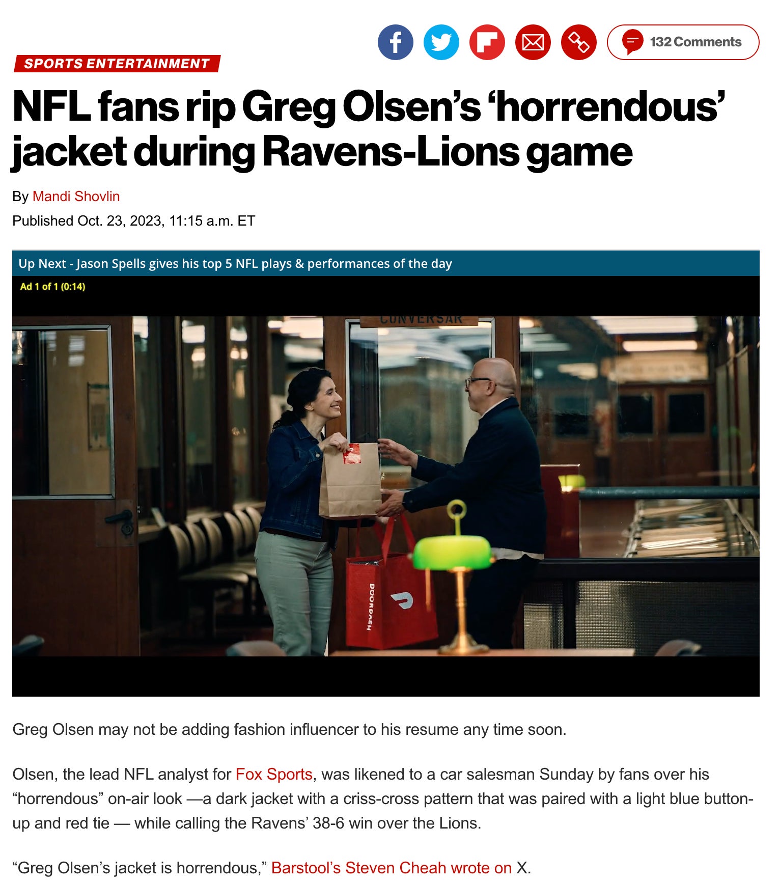 And let me just put everyone on notice - if you're on TV and wearing a suit I deem to be ugly, I'm coming for you! The NY Post did a write up of my critique of Greg Olsen's jacket a few weeks ago.