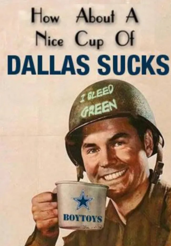 Hey, it's Dallas week, baby. And it's a big one. You know it. I know it. The Fuzz in Lehigh Valley know it, apparently too well. I don't care if we're 7-1, 4-4, or 1-7 (actually I do care, very much so). I also don't care if the Cowboys are paper tiger frauds like they always are. Any time the Eagles face off against the Cowboys there should be some gravel in your guts and spit in your eye heading into the game. And if you gotta voice your Dallas hate while also actively protecting and serving, so be it. Probably.
