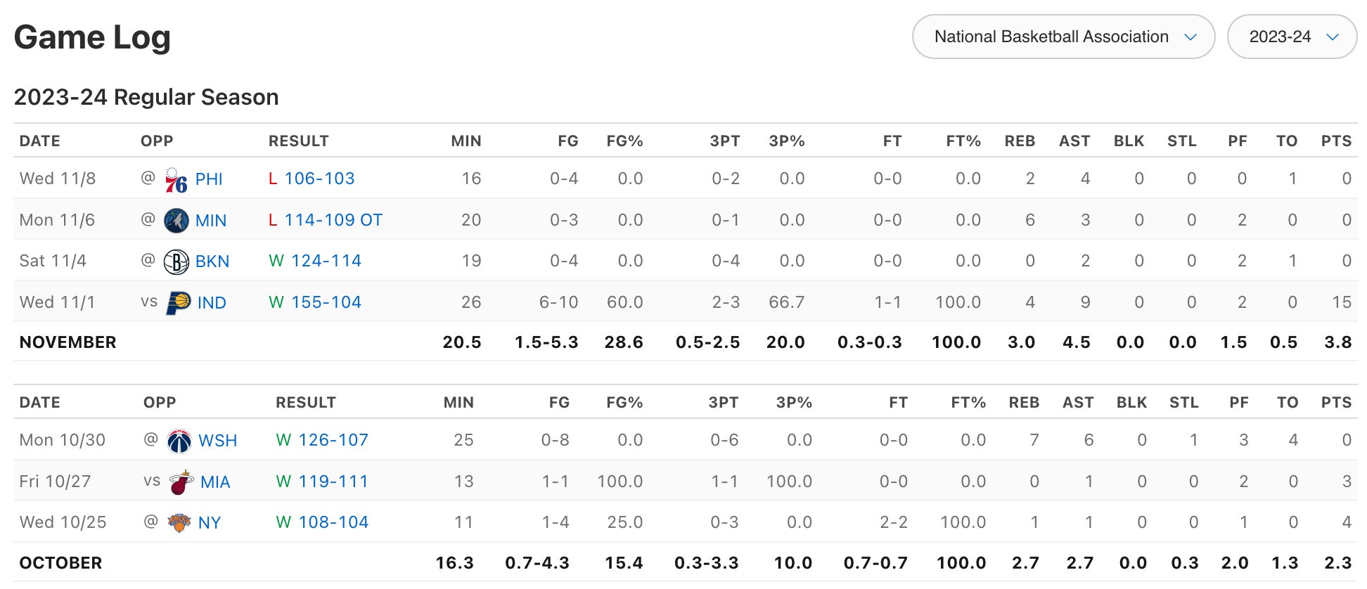 Honestly, he's the only bench player who is giving this team anything offensively and we're almost at 10 games in.