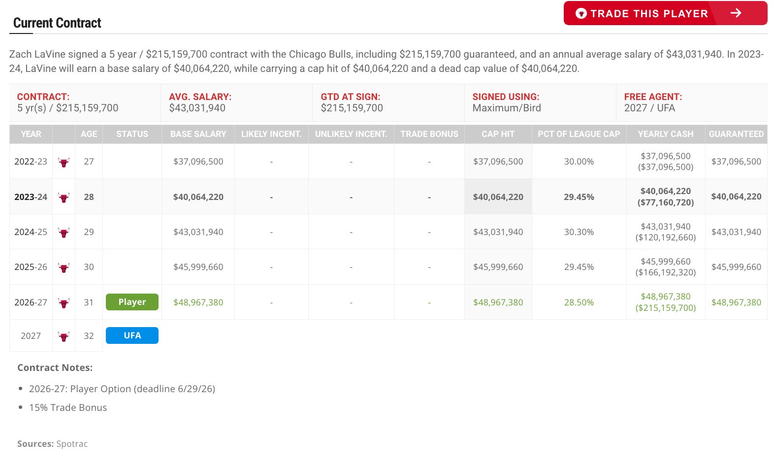 Now, we're already hearing reports that Austin Reaves is off the table in any LaVine deal, so cross off his $12M. I think any LaVine trade starts with DLo's $17M, and remember he has a player option for next season at $18M. I can't imagine the Bulls give a shit about that unless they somehow think he can be their PG of the future, but at 28 if you're going to rebuild you really don't have a need for him. My guess is they could just flip him down the road in February for additional assets.