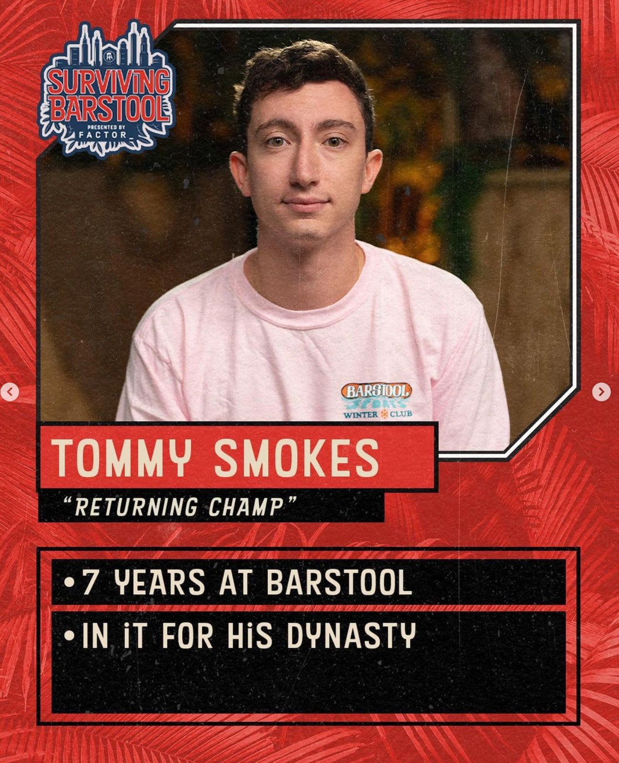 Tommy is one of the favorites and for good reason. The kid lives, eats, and breathes reality game shows. The fact that he was able to break Francis on the last time he competed on a Barstool gameshow, won the whole thing, then retired, and is coming out of retirement like Jordan in this says all that needs to be said. Tommy is a front-runner for good reason.