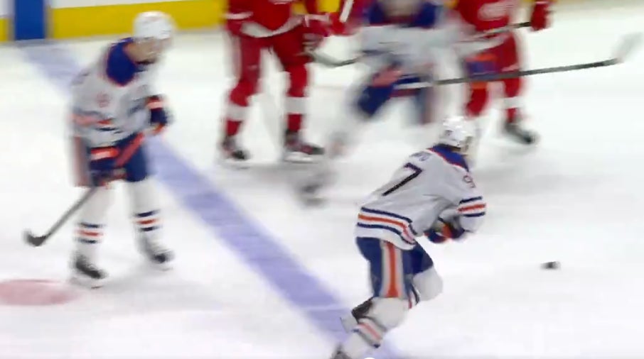 You see two different Red Wings players immediately throw their hands up calling for offside. Jake Walman completely gives up on the play thinking it's offside. But Connor McDavid knows. Because Connor McDavid is a robot, and he's the only being on the planet so far who has been able to fully understand the ridiculous offside/onside rule in the NHL. He's got that shit dialed now, and nobody can stop him.