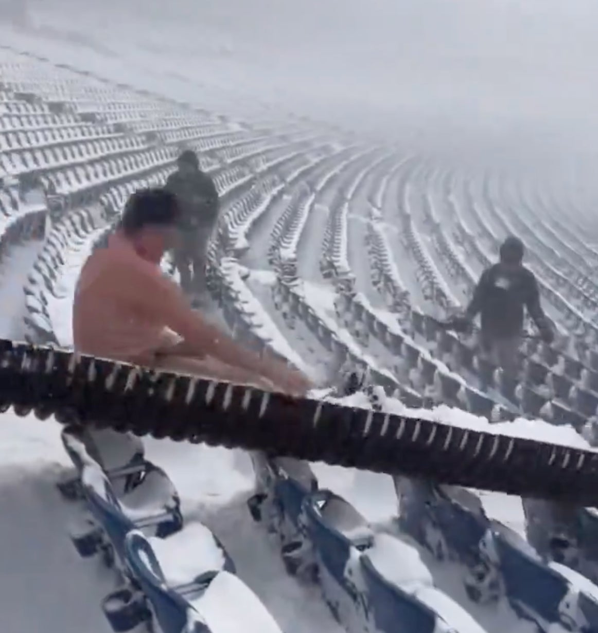 Bills Fans Are Removing Snow From The Stadium For $20 An Hour By Sliding Down Troughs While Shirtless
