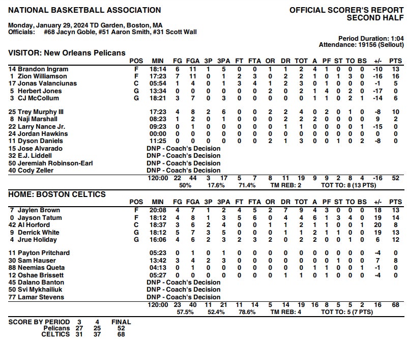 - After a horrific 36 point 1st quarter, the Celts didn't allow another quarter over 27 the rest of the night. In order to pull off a comeback you have to tighten up defensively, and holding the Pelicans to just 52 points on 50/17% shooting while causing 8 TOs was the foundation of the comeback.