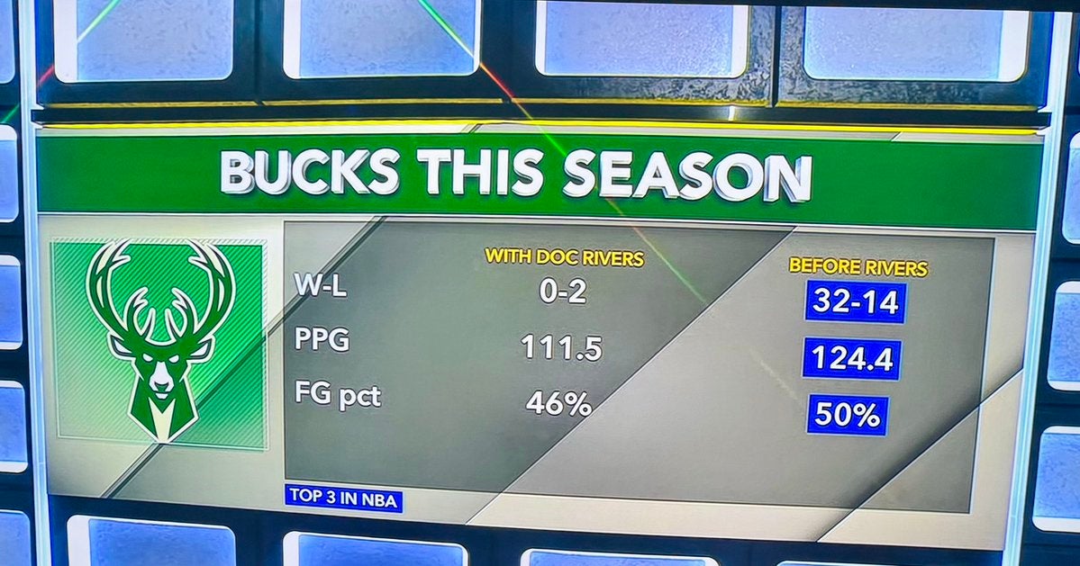 Given the fact that the Bucks have one of the hardest remaining schedules in the league after their cakewalk start, it's not time to panic or anything but it's certainly not the start I imagine the team and the franchise thought they'd have by bringing Doc in. When in reality, they are getting exactly what Doc is, and every fanbase of his previous stops could have told you what was coming. The Cavs and Knicks are rolling, so it's not as if the Bucks have a ton of wiggle room to figure stuff out. That's what made this whole situation so bizarre, but this is what they asked for.