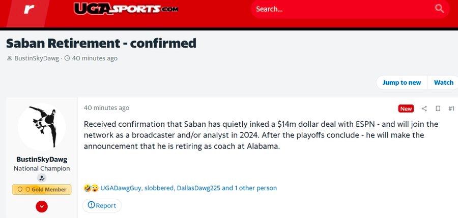 A Georgia Message Board Poster Broke the News That Nick Saban Was Retiring and Joining ESPN Before the College Football Playoff