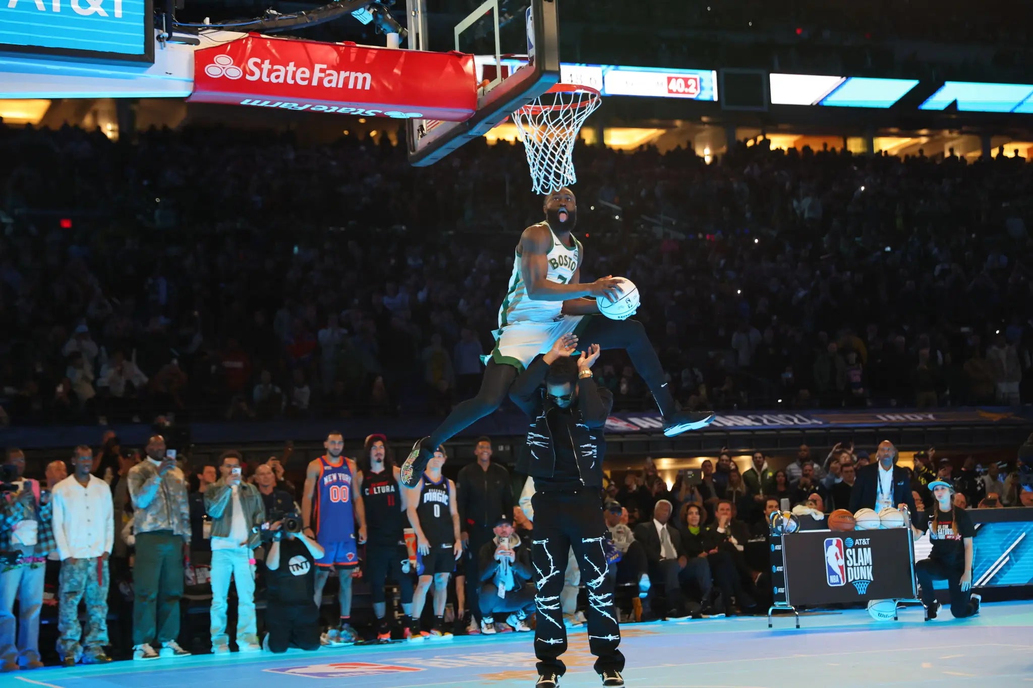 It was very funny that TNT completely missed Jaylen's first dunk, which is exactly what you want when the biggest star of the night is finally up. Not like anyone wanted to see it. Once we did, it was a pretty good dunk. Nothing crazy, probably a little over-scored.