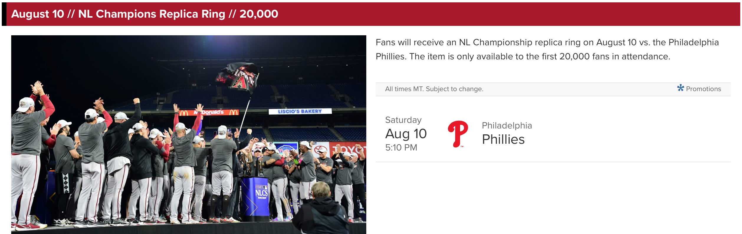 Petty Baseball Is The Best: The Arizona Diamondbacks Are Giving Away Replica NL Championship Rings When They Host The Phillies
