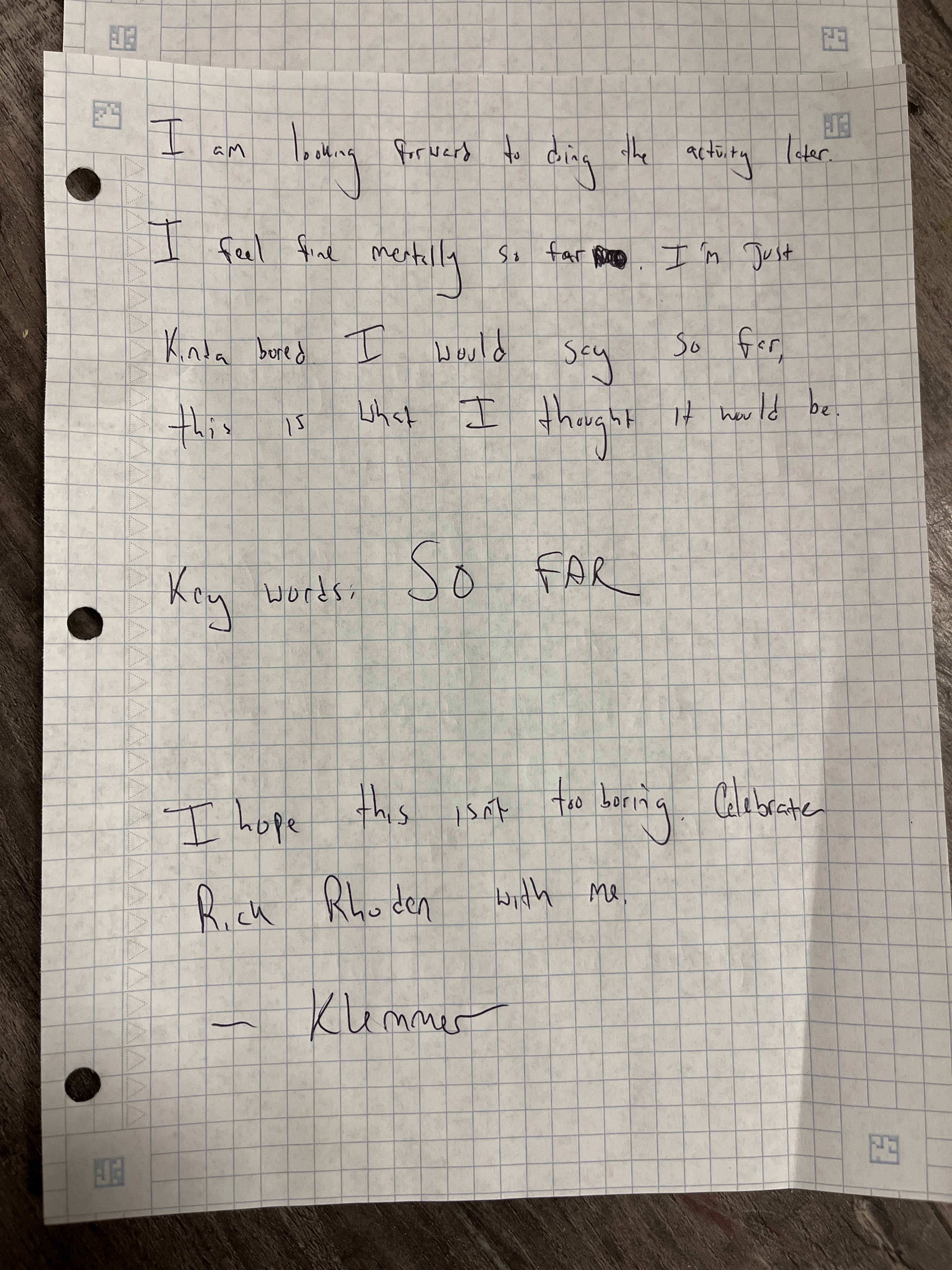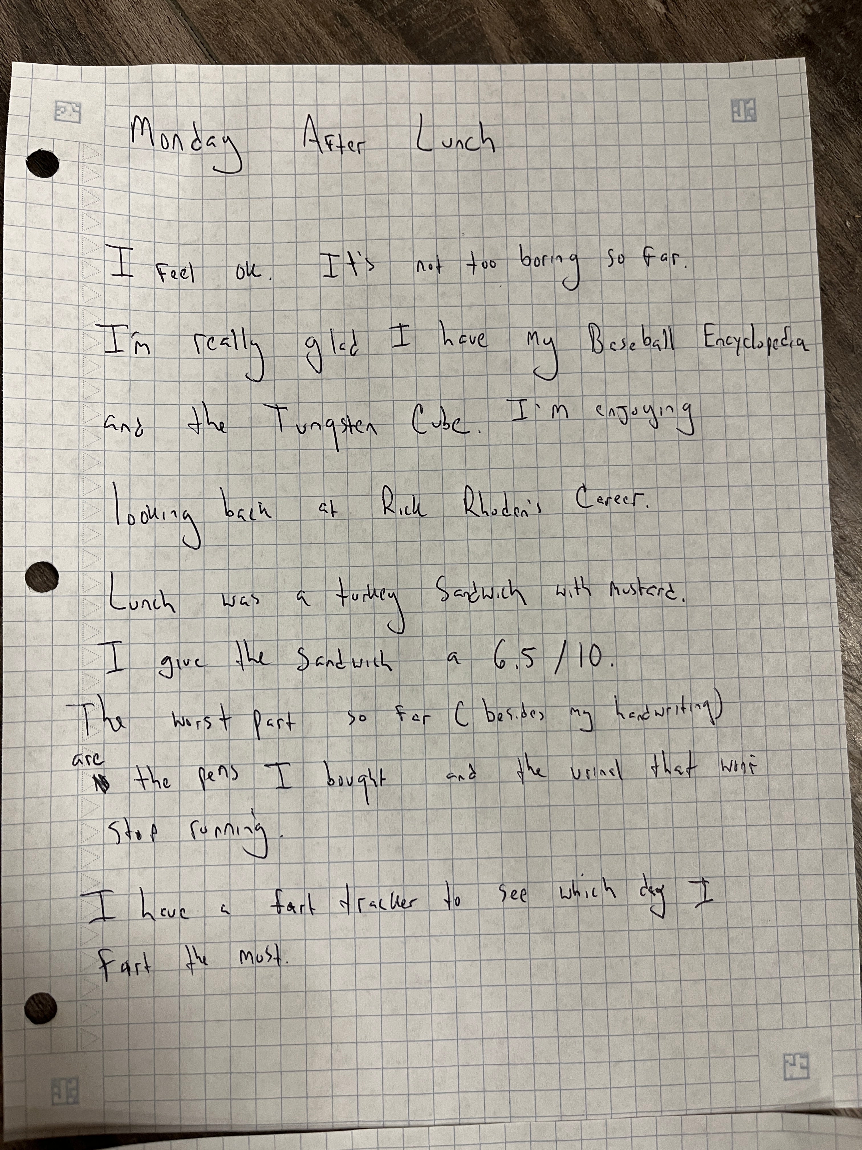While Klemmer is in solitary confinement he is allowed to journal in a notebook and slide them under the door for us to post as blogs. These are the ramblings of a man locked up for only 2 hours. How will isolation effect the blogs after he's done some serious time alone? Time will tell.