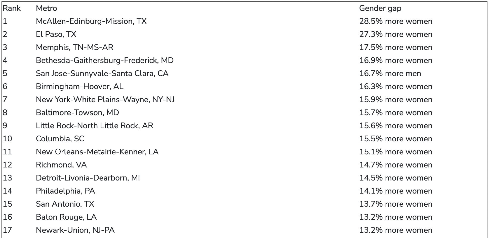 Are you surprised to see the ONE place in the top 17 with the largest gender gap is the exact area that our woke professor was scolded for? And potentially the most terminally online area in the country?