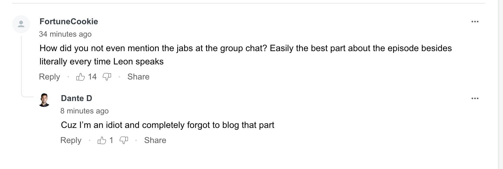 So we're getting two blogs in what should have been one. My bad, but at the same time, I feel like this is such an important topic that it kind of deserves its own blog and if I had included it in the original it would have completely taken away from the hilariousness of the episode.