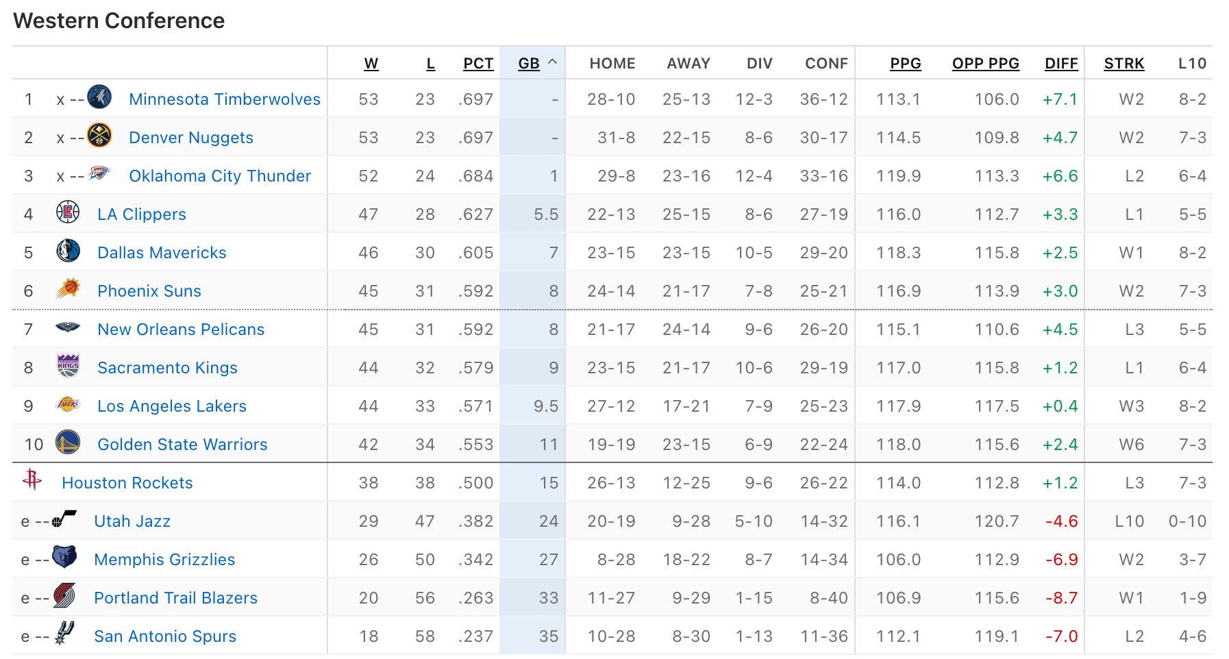 The Warriors close the season with DAL/UTA/LAL/POR/NO/UTA, so is it totally crazy to think they could slide up a little bit to maybe the 9/8 spot? They are 1-1 vs NO, 2-1 vs LAL, and 2-2 vs SAC. There's a world where the Kings find a way to slide to 7th, and then GS wins the H2Hs against LAL/NO and catches them, which would put them in a position to potentially leap them as well.