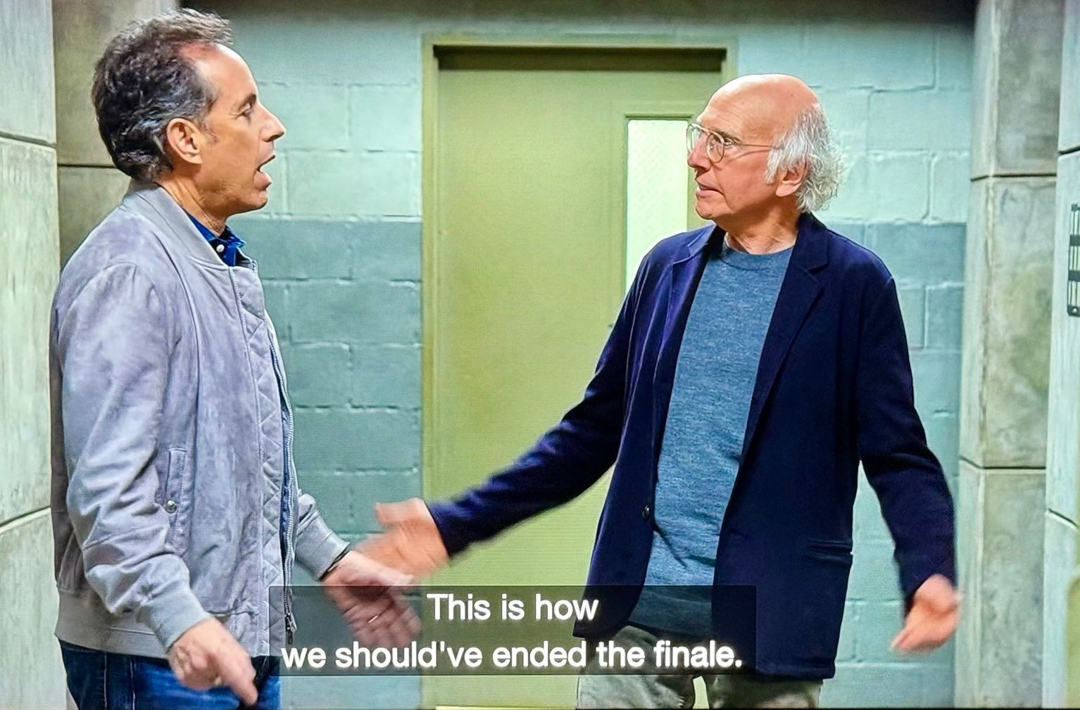 ……Until it wasn't. Instead, Jerry walked into the jail cell and told Larry that he was free due to a mistrial being declared after Jerry alerted the judge that he ran into a juror at a Mexican restaurant the night before, meaning he broke sequester and thus invalidated the trial. Larry and Jerry walked out together, as Larry commented that THIS is how they should've ended the Seinfeld finale. And while they can't actually turn back time and change it, it feels like they basically did with this moment. This finale felt like not just an ending to Curb, but also a re-write of the Seinfeld finale from 26 years ago. Maybe Larry did learn one lesson after all.