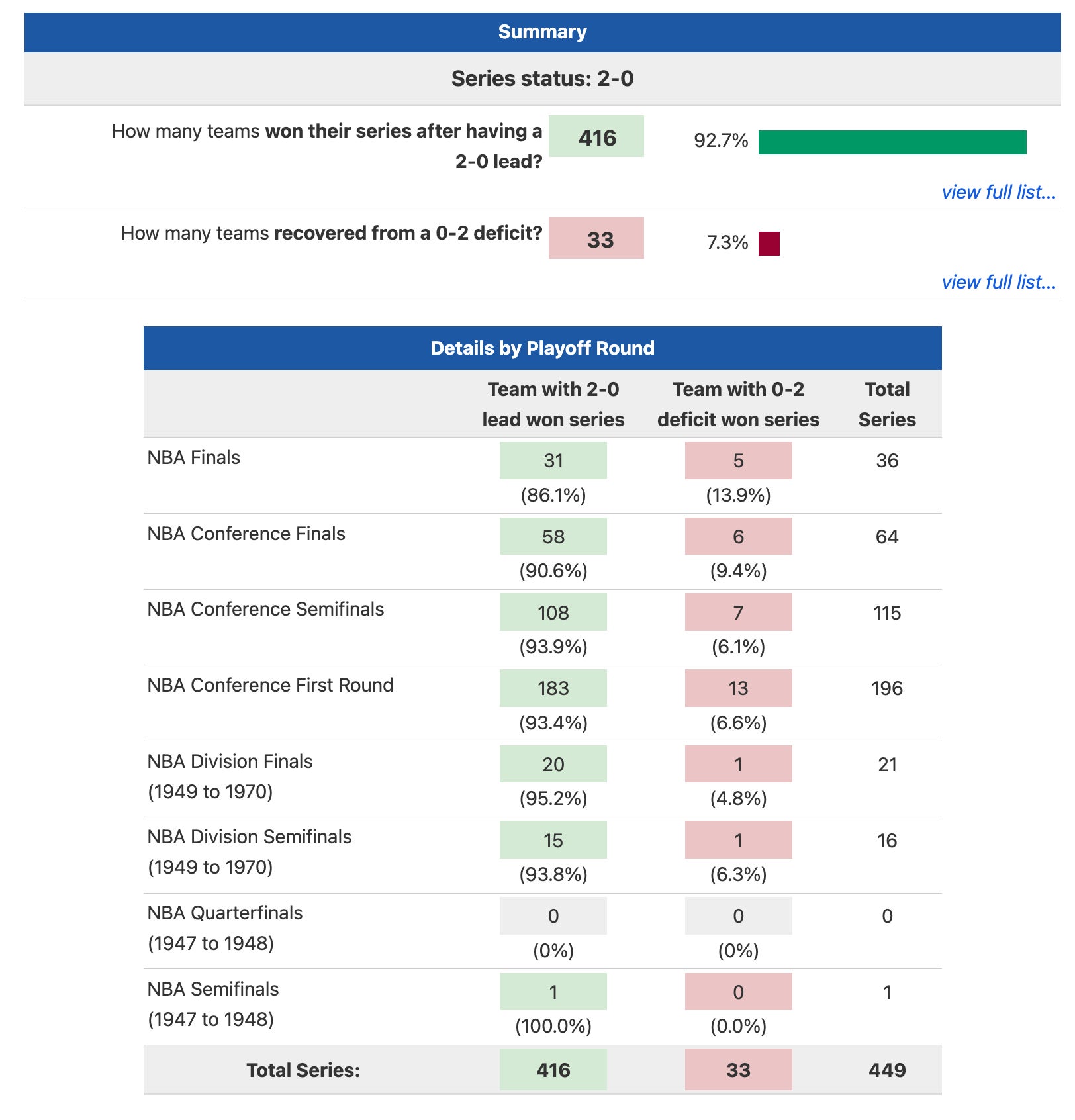 That's what we're going to learn tonight. While it's only Game 2, all three teams enter with it being as close to a must win as you can possibly have in a playoff series prior to having 3 losses where one more will actually end your season. As I said, NBA history does not lie, and this is what it says