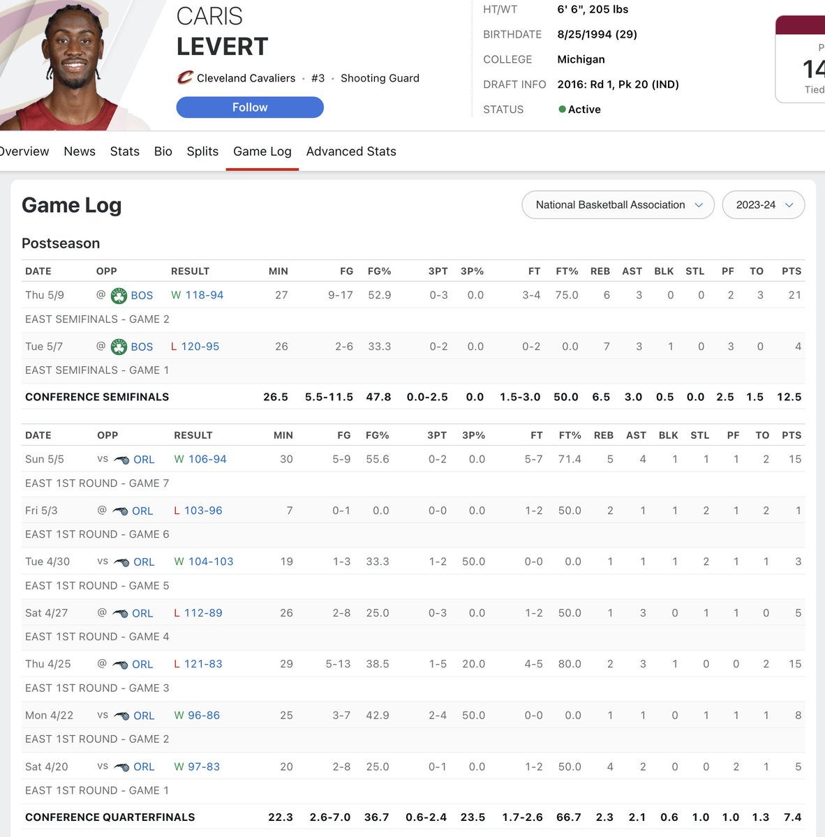 On the other end? Caris LeVert had 21 points. A known Celtics killer, they allowed him to come into their building and have the best performance of his playoff run