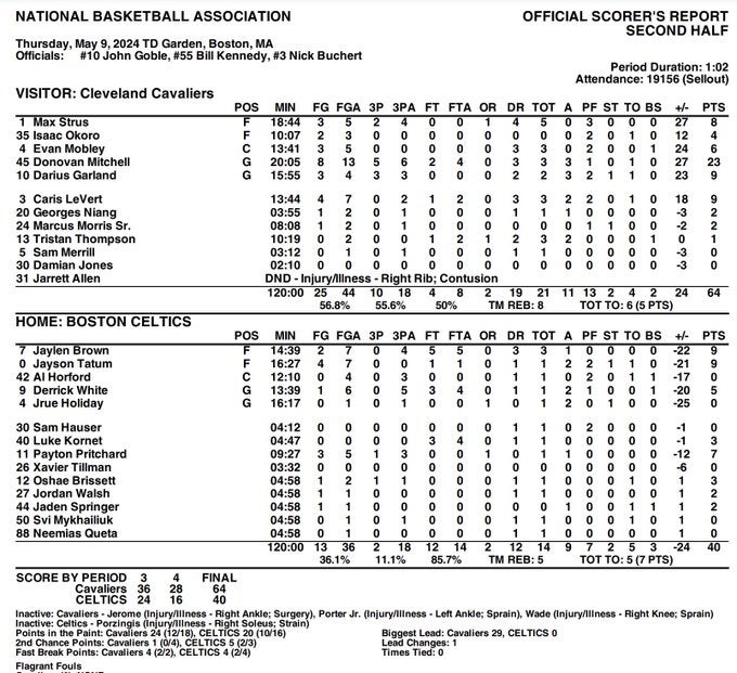 To me, these last 4 minutes are where the issues started, not just the disaster second half. Winning playoff games requires you to be effective around the margins, and usually when the Celts have these types of performances they are absolutely awful in that department. In both the first and second quarter they had at least an 8 point lead, and did not capitalize either time Instead, they could not execute and let the Cavs creep back in.