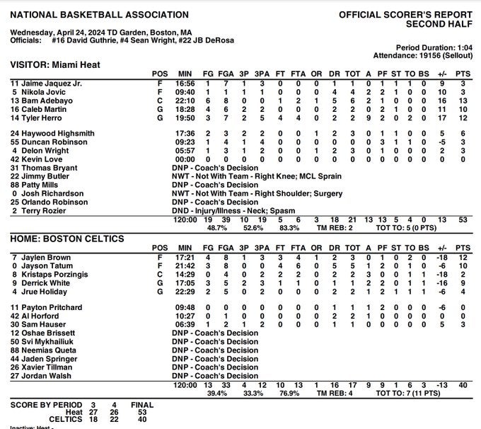 - If this second half felt familiar, it's because we literally lived it in Game 2 vs MIA. I'm not kidding, the second halfs of those games are carbon copies of each other