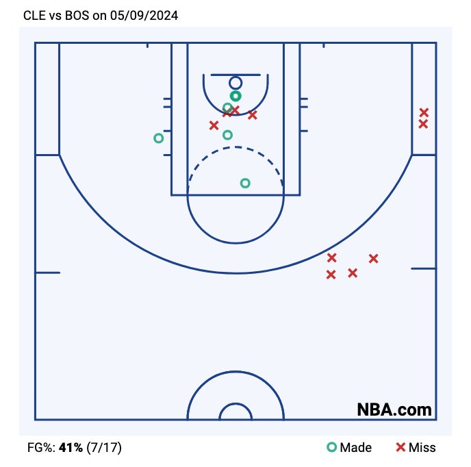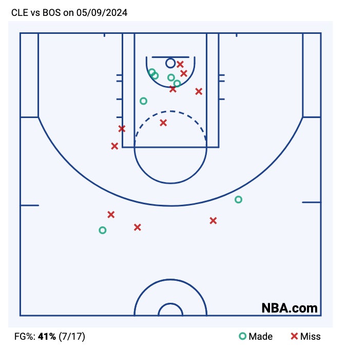 P&R defense? Awful. When the Celts played drop, the Cavs buried 3s. When the Celts got away from drop coverage and switched instead, they were beaten repeatedly off the dribble. There was no resistance of any kind on the defensive end, and you simply will not win playoff games if you aren't getting stops. This is what getting completely outplayed looks like, and it came at the worst possible time.