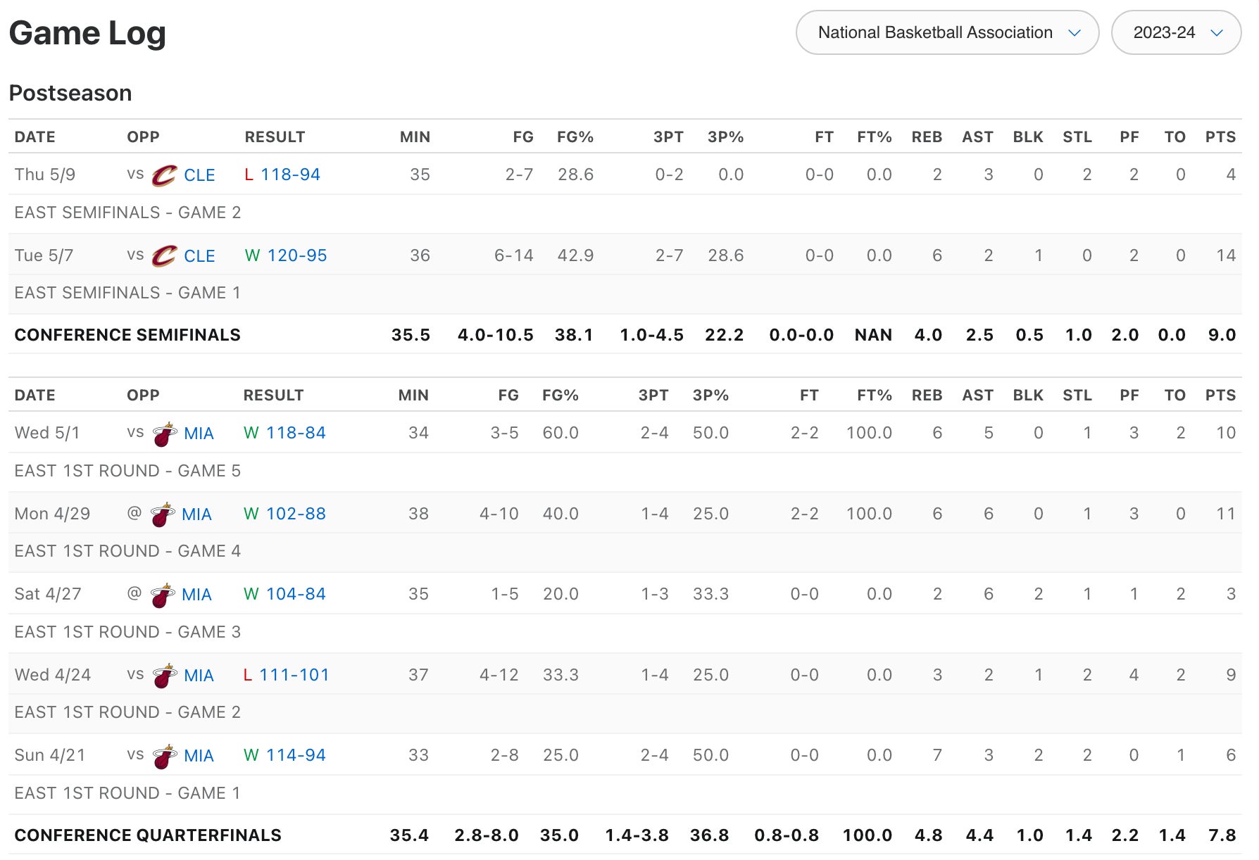 I know that Tatum has a lot of responsibility, but the baseline expectation is that he can win his matchup vs Max Strus. I mean what are we doing? This wasn't a case of Tatum being double or triple teamed. While that does happen at certain times, that was not the case last night. There's no excuse for such poor finishing at the rim, especially when the Cavs don't have their starting center on the floor. Shit like this is inexcusable. This is not a random game in January. This is the second round of the playoffs.