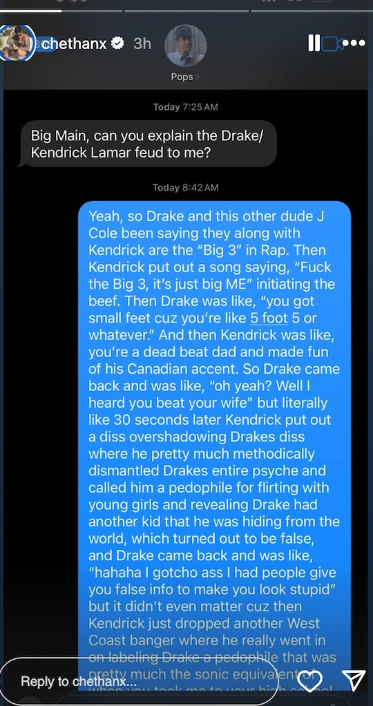 Chet Hanks Explaining The Drake VS Kendrick Lamar Feud To His Dad (Tom Hanks) Via Text Is Everything You Hope It'd Be And More
